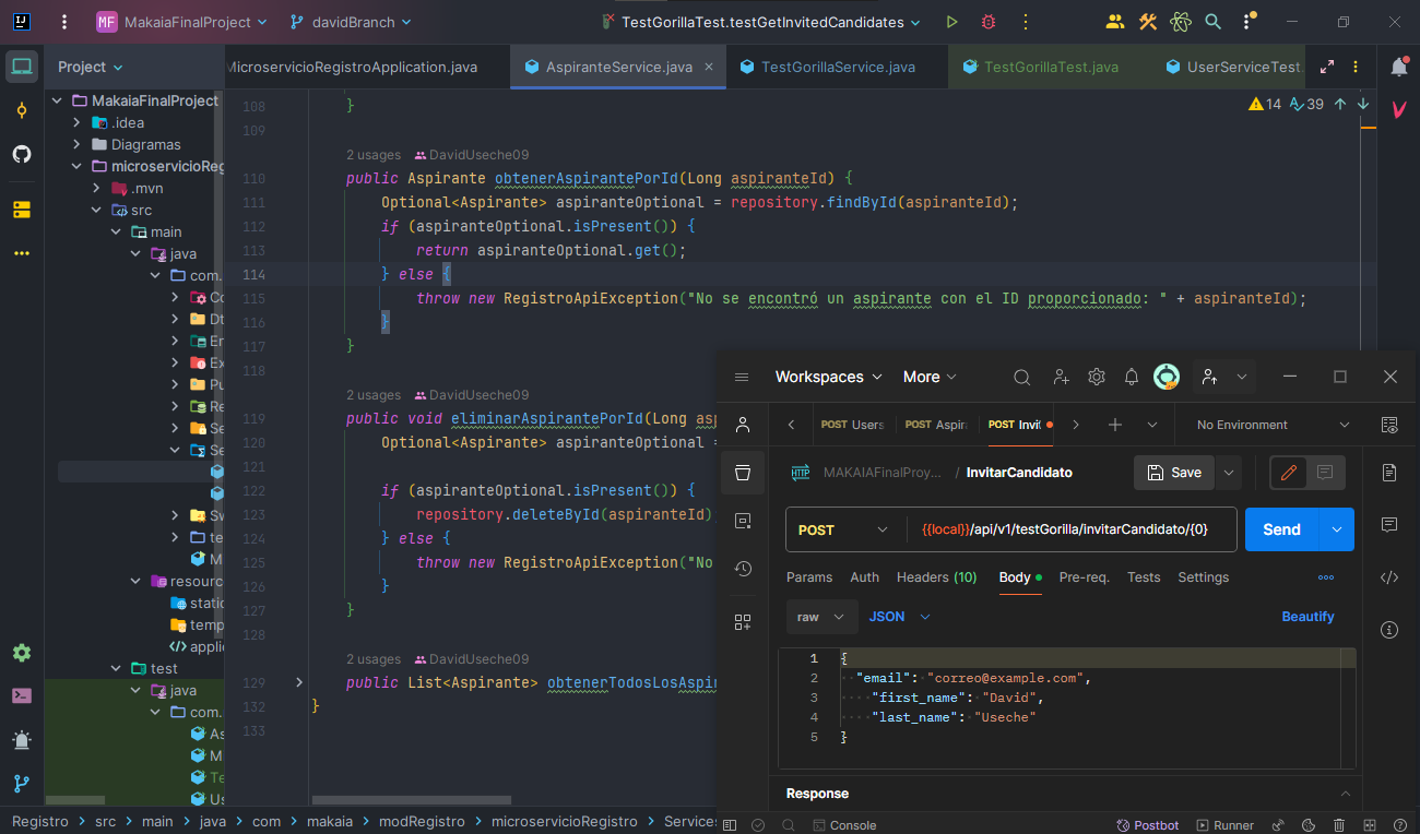 In the MAKAIA bootcamp I learned a wide range of skills in API development and microservices management, which included the use of Java, SpringBoot, and other technologies in addition to API development. Through my experience of developing different projects with my colleagues, I have gained a deeper understanding of the nature of web services, which helped me refine my skills as a Back-End developer. I assembled and created several services to test my creative and logical skills by fulfilling the client's requirements.